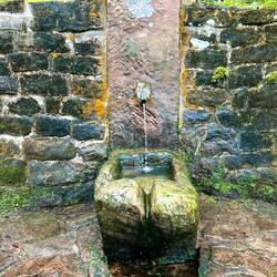Als ich Niederbronn, einen Ort mittlerer Größe hinter mir lasse, schraube ich mich Meter für Meter den Weg zur Ruine Wasenbourg hinauf. Die Luftfeuchtigkeit ist relativ hoch und so genehmige ich mir, vor Antritt der Burgbesichtigung, einen halben Liter Wasser auf Ex.