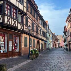 Über das historische Zentrum von Châtenois führt der Weg durch die Weinberge in den Wald.