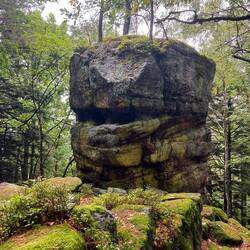 Über Felsenpfade und Forstwege werde ich zum nächsten Highlight geleitet, dem Massif du Donon mit seiner sehenswerten Tempelruine.