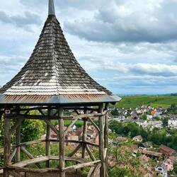 Die letzten Kilometer nach Ribeauvillé windet sich der Trail steil, über felsige Pfade bergab. Dementsprechend unrund humpelt Bananagirl die letzten Kilometer an Château du Haut-Ribeaupierre und Château de Saint-Ulrich vorbei. Endlich, am späten Nachmittag, erreichen wir Ribeauvillé. Nach einem verdienten Kaltgetränk suchen wir unser bescheidenes Nachtquartier in Form einer kleinen Dachgeschosswohnung auf. Hier muss unser Section Hike dieses Mal enden. Morgen früh bringen uns Bus und Bahn auf die andere Rheinseite, ins ebenso schöne Markgräflerland.