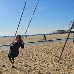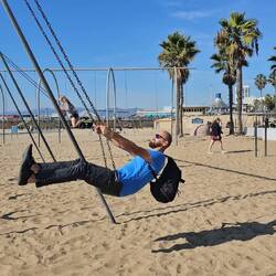 Unsere neue Unterkunft ist das Samesun Hostel und liegt quasi direkt am Strand von Venicebeach. Hier ist das Leben vielfältig und einige Hollywoodgrößen haben hier bereits ihre Muskeln am "Musclebeach" gestählt. Der bekannteste von Ihnen ist der gute Terminator Arnold. Das ist aber nicht alles. Am Venicebeach ist der moderne Skateboard-Sport entstanden. Hier entwickelten die sogenannten Z-Boys den Sport wie man ihn heute kennt. Die Z-Boys waren junge Surfer welche den Adrenalinkick suchten wenn die Wellen mal zu flach waren. Also setzten sie sich auf Bretter mit Rädern und "surften" die Straßen von L.A. entlang. Wir sammelten unsere ersten Eindrücke mit einem Spaziergang entlang des Strandes Richtung Santa Monica ein.