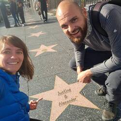 Es wäre schwierig das alles inhaltlich wieder zu geben was wir sehen und hören konnten. Grob lässt sich allerdings sagen das so ziemlich jeder bekannte Schauspieler, Musiker und teilweise auch Künstler an irgend einer Ecke wohnte, zur Schule ging oder entdeckt wurde. Auch einige Gebäude aus bekannten Filmen wie Zurück in die Zukunft, Lalaland, Sisteract und mehr konnten wir entdecken. Der neue Barbie Film wurde sogar teilweise 10 Meter neben unserem Hostel gedreht.