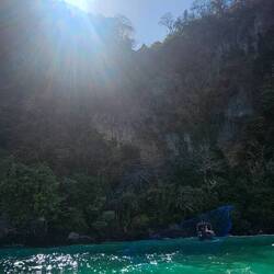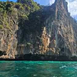 Anschließend fuhr das Boot nochmal um die Insel und wir konnten dann ebenfalls einen Blick auf Majabeach von der Bucht aus haben. Unser Boot machte eine 30 Minütige Pause in der Majabucht und wir schnorchelten entlang der Felsen suchten Haie und beobachteten erstmals einen Papageienfisch. Haie gab es hier auch, bei der Menge an Menschen um uns herum, ließen sich jene natürlich nicht blicken.