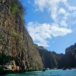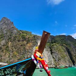 Berühmtheit erhielt Koh Phi Phi im Jahr 2000 als Leonardo DiCaprio hier im Film The Beach zu sehen war. Der benannte Traumstrand im Film befindet sich auf Koh Phi Phi Ley im Naturschutzgebiet und trägt den Namen Majabeach. Ein wunderschöner weißer Strand aus pudrigem Sand. Umgeben von hohen Felsen so das man nur einen Spalt zum Meer vom Strand aus sehen kann. Der Strand war bereits für ein paar Jahre geschlossen, da zuviele Touristen Schäden am Ökosystem verursachten. Aktuell kann er wieder betreten werden von einer Anlegestelle auf der anderen Seite der Insel. Gelernt hat man wohl allerdings nicht viel. Als wir mit unserem Boot dort ankamen drängten sich hunderte nein tausende Menschen durch den Nadelohrgroßen Spalt Richtung Strand. Trotz dem großen inneren Drang selbst auf diesem Strand zu stehen, entschieden wir uns dagegen und blieben auf dem Boot. Für uns war es ein trauriges Bild und wir wünschten, der Andrang würde in einem verantwortungsvollen Maß begrenzt werden. Für die Insel und nicht des Geldes wegen. Denn immerhin bezahlt jeder 400 Baht (ca. 10 Euro) für das Naturschutzgebiet, sobald ein Fuß die Insel berührt.