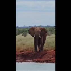 Heute geht's schon früh los auf Safari. Nach einer verkehrsreichen Fahrt mit fahrtechnisch interessanten Ausführungen unseres Fahrers Jackson erreichen wir den Eingang zum Tsavo East National Park. Hier wird das Dach des Autos geöffnet, sodass man während der gesamten Pirsch stehen kann wenn man will. Ganz besonders freuen wir uns auf die Elefanten und hoffen auf einen Löwen. Während der 2,5 stündigen Pirschfahrt treffen wir ziemlich bald auf die ersten Elefanten! Ich hab sie erst gar nicht gesehen, weil sie ein Stück weg standen und weil sie von der rotbraunen Erde auch ganz braun waren. Was für eine Aufregung! Ich bin schwer beeindruckt einen Elefanten in seinem echten Lebensraum zu sehen! Sie lassen sich von uns überhaupt nicht stören. Als alle genug Fotos hatten ging die Fahrt weiter. Wir sehen riesengroße, wunderschöne rote Termitenhügel, zierliche Gazellen, Kaffernbüffel und jede Menge Vögel, z. B auch die größten Vögel der Welt - die Strauße. Die Männchen werden bis zu 135 Kilo schwer. Sie sind nicht nur die größten sondern auch die schnellsten Laufvögel der Welt! Sie können bis zu 70km/h schnell laufen. Leider sind auch sie vom aussterben bedroht. Und dann endlich entdecken wir auch Zebras!!! gleich ganz viele! Sie sind an einem Wasserloch und wir schrecken sie ziemlich auf. Aber dann bleiben sie doch da, Sie sehen wunderschön aus!!! Weiter hinten unterm Baum haben es sich ein paar Büffel gemütlich gemacht. Zebras sind recht scheue Tiere. Eins aus der Gruppe hat die ganze Zeit die Ohren in Habachtstellung. Kurz vor der Mittagspause sehen wir noch 3 große dunkle Elefanten unter einem Baum stehen. Nächster Fotostopp. Wie neugierig sie zu uns rüber schauen!! Sie beobachten uns genauso wie wir sie. Zum Glück haben die Elefanten hier genug Platz. Der East Tsavo Nationalpark ist 11.747m2 groß. Elefanten laufen nämlich ungefähr 13km täglich und suchen sich für ihre 2 Stunden Schlafenszeit immer ein neues Plätzchen.