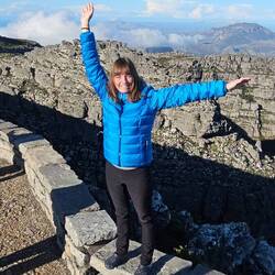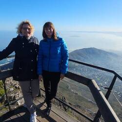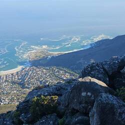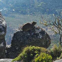 Heute kommen wir früh in Cape Town an und bleiben über Nacht. Das gibt uns viel Zeit für einen Ausflug. Wir haben eine private Tour gebucht und werden früh von Waseem, unserem Guide abgeholt. Erste Station ist der Tafelberg, eins der 7 Weltwunder - das einzige, natürlichen Ursprungs. Hinauf fahren wir mit der Seilbahn, deren Gondel sich während der 3 minütigen Fahrt dreht, sodass jeder mal vorne stehen und die Aussicht genießen kann. Oben staunen wir erstmal über den super Ausblick bei schönstem Sonnenschein! Zum Glück hängt gerade keine Wolke rum. Wir drehen eine kleine Runde und Waseem erklärt uns alles was wir sehen. Hier oben gibt es sogar Tiere! Wir haben einen Capschen Klippschliefer - der zur Gattung der Schliefer zählt - gesehen aber es soll auch Springböcke geben.