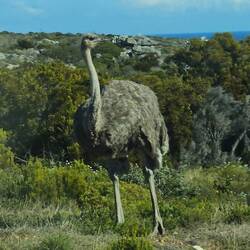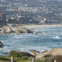Weil der Leuchtturm oft in Wolken oder Nebel gehüllt war, wurde er geschlossen und ein neuer Turm wurde am südlichsten Zipfel der Landzunge, 87m über dem Meer errichtet. Wir machen ein paar Fotos der spektakulären Aussicht auf das Kap der guten Hoffnung und essen unsere Sandwiches. Dann fahren wir direkt rüber zum Kap der Guten Hoffnung. Es ist der südlichste Teil Afrikas und natürlich werden hier auch Bilder gemacht. Das Kap befindet sind übrigens in einem Nationalpark und uns begegnen unterwegs Strauße, die gemütlich futtern. Waseem erklärt uns den Unterschied zwischen männlichen und weiblichen Vögeln und ihre gefährlichen Krallen, mit denen sie sich verteidigen. Sie lassen sich nicht von uns stören und weiter geht die Fahrt zur letzten Station für heute - Boulders Beach - Pinguin Kolonie in Simons Town. An diesem kleinen Strandabschnitt tummeln sich über 2000 Brillenpinguine. Heute sind zwar nicht ganz so viele da aber es ist trotzdem lustig anzuschauen, wenn sie aufrecht den Hügel runter ins Meer watscheln. Dort schwimmen sie unglaublich schnell! Sie sind viel kleiner als wir dachten.
