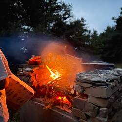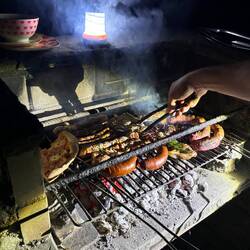 Tja, da war‘s dahin mit gemütlichen Beisammensein bei einer Zitronella und einer Mosquitospirale nach geilem Essen. Es raschelt, wir leuchten in den Wald - und zack, Wildschweinrotte.もっと詳しく