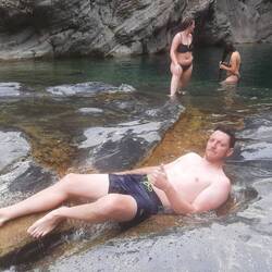 Nach dem Abstieg von der Grenzkammstraße ging es Tal abwärts in eine Schlucht mit Naturpool.⛰️⛲️