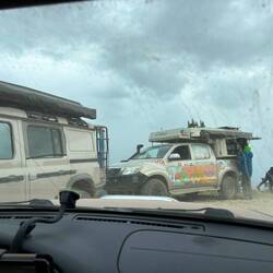 Um endlich zu Dritt (die Autos sind gemeint) vereint zu sein, treffen wir uns heute Abend auf einem Campingplatz 🏕️