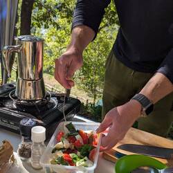 Am Campingplatz direkt direkt am Meer eingecheckt und ein nettes Restaurant gesucht.