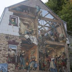 La cosa che ci ha colpito di più della città bassa è stato un enorme murales che rappresenta tutto quello che riguarda Quèbec City: si vede il cambio delle stagioni, è ritratto il fondatore della città, ci sono gli inuit che giocano ad hockey... Era enorme, e dal vivo la prospettiva era fatta così bene che sembrava di vedere una vera via della città!