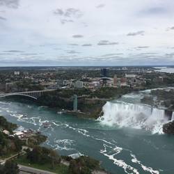 Per di più, a pranzo finito, siamo saliti all piano superiore panoramico, da cui si potevano vedere i dintorni di Niagara Falls, la cittadina canadese sorta sulle cascate. È una cittadina piuttosto kitsch, a dire la verità: una specie di Las Vegas anni ottanta. Chiassosa e luccicante, sembra una via di mezzo tra il trash dei baracconi di Brugherio e l'appariscenza di Gardaland... non ha niente della classe e del fascino delle capitali dell'intrattenimento dei giorni nostri!