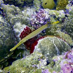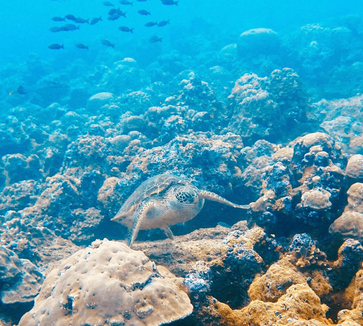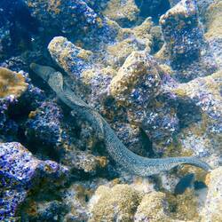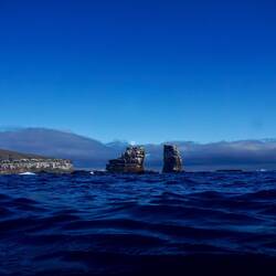 Heute Früh ist die Strömung zum Glück moderater. Wir können vielen Hammerhaien dabei zuschauen wie sie sich putzen lassen. Die obligatorischen Schildkröte darf natürlich auch nicht fehlen. Aber das richtige Highlight erwartet uns an der Oberfläche. Fünf Orcas tummeln sich in der Nähe des Riffs. Laut unseres Skippers haben sie gerade einen Hammerhai zerlegt. Wir können noch sehen wie sich die Fregattvögel Hammerhaireste aus dem Wasser fischen.