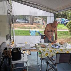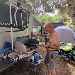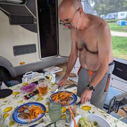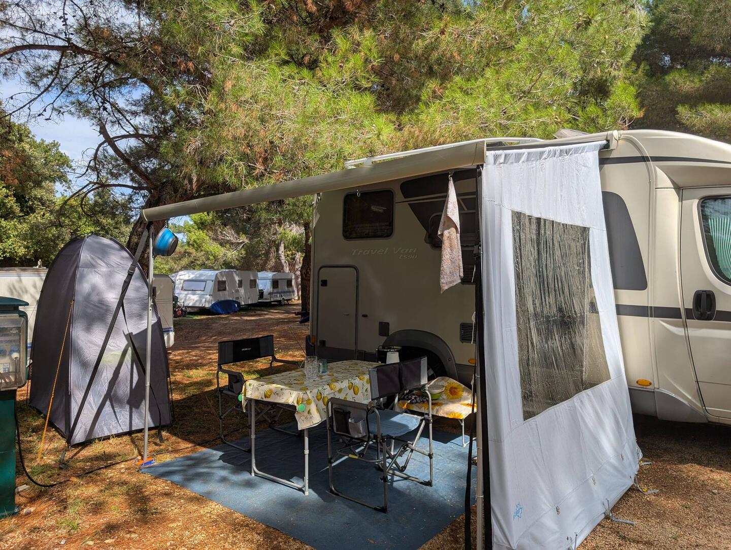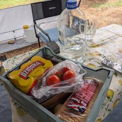 Zusammenpacken, in einer kroatischen Konoba mittag essen und jetzt regnets