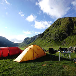 Nach einer ruhigen, aber nassen und regnerischen Nacht geht es heute auf die Lofoten. Da wir die Zelte nass einpacken müssen, gibt es das Frühstück im Küchenraum des Campingplatzes.