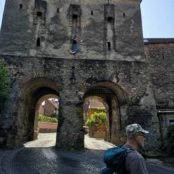Nächstes Ziel ist zunächst Bistritza. Mit der grossen evangelischen Kirche. An den - heute rumänischen Geschäften - noch deutsche Namen.