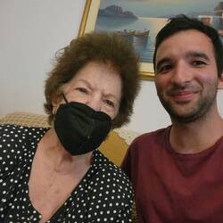 Yesterday I visited thia Eleni (Andriopoulou). She was very excited to see photos of the engagement party. She says hello to everyone.
