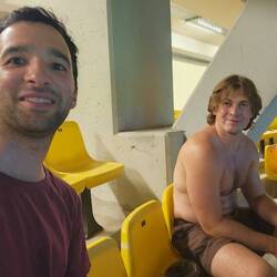 I then met with Louis and Adam to watch NZ play Guinea in the Olympics (football). NZ won 2-1, Ben Waine scored winner.