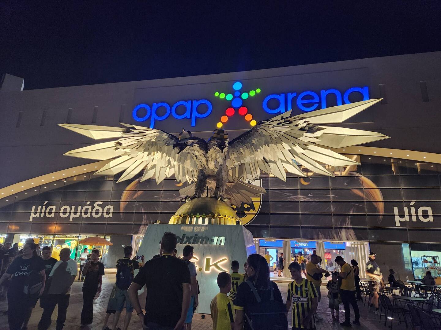 It was 8.05pm. We then noticed AEK was playing at 9pm in the Europa League. We managed to buy tickets, authenticate ourselves and get in the stadium by 9.20pm. They were playing at the new ΟΠΑΠ Arena.