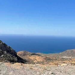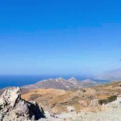 🇫🇷 Soirée tranquille dans Agía Galíni avant de rejoindre la prochaine destination. Nous avons tous les deux mangé des Souvlaki : un plat grec composé de petits morceaux de viande et souventBaca lagi