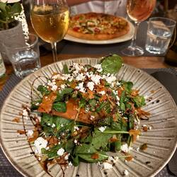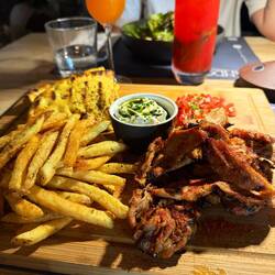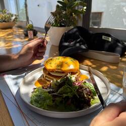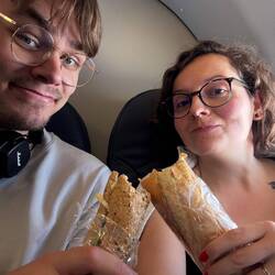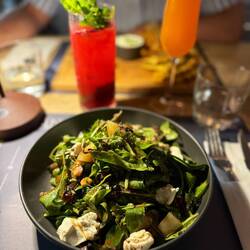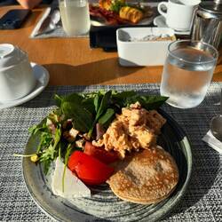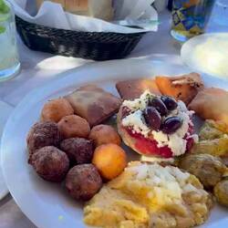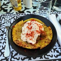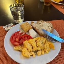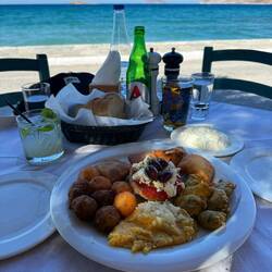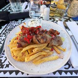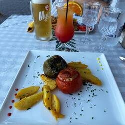 🇫🇷 Soirée au restaurant de l’hôtel, où on a eu l’opportunité de manger un premier plat typique grecque - le Souvláki pour David, et des Vegan Meatballs accompagnés de yaourt et painRead more