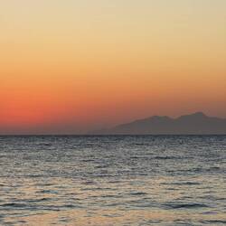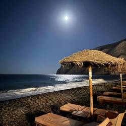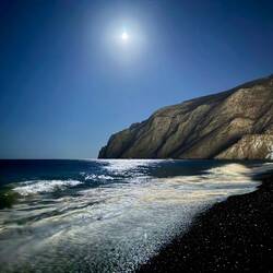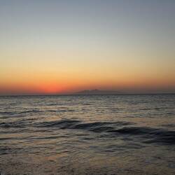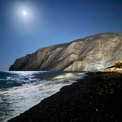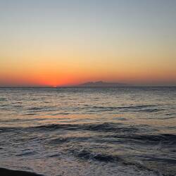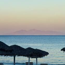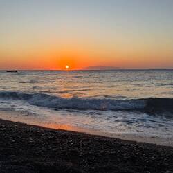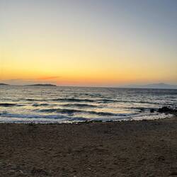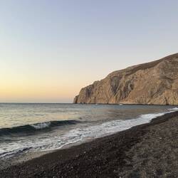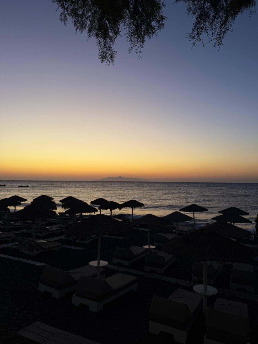 🇫🇷 Réveil aux aurores ce matin pour admirer le lever du soleil sur la plage de Kamári, avec une vue incroyable sur l’île d’Anafi qui se situe en face. 🌅