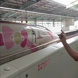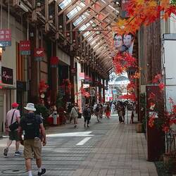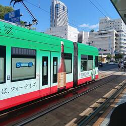 On our way by shuttle to get a tram more like a train to the Hiroshima memorial Gardens