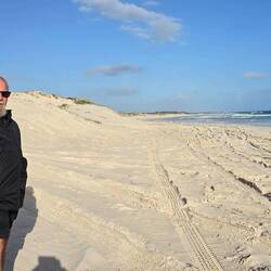 Approx. 50km out to Lucky Bay Beach, the colours of the water had to be seen to be believed. Wind was freezing but so beautiful, then onto Rossiter Bay, Hellfire Bay, Thistle Bay (Whistling Rock) and finally to Cape Le Grande Beach. Was high tide so no driving on any of the beaches.