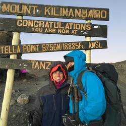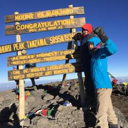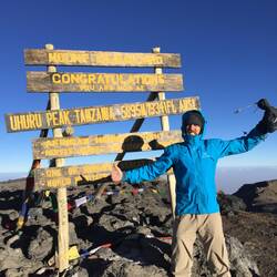 All our hiking throughout the trip has paid off and made Kilimanjaro easy in one sense. The hiking was short and not very steep and on well groomed trails. We only actually walked 62km over 7 days. The troubles came from the painstakingly slow pace. We walked at 1km/hr or less most days. One member in our group was 72 and even complained about the pace. The pace had a means to an ends as the slower you go the better you acclimatize. I don't think we broke a sweat on the first 5 days. The real challenge came on summit day. We were awoken at 11pm to start our final approach a midnight. Thankfully we had accidently planned our hike to coincide with a full moon so visibility was very good. I didn't even use my headlamp for most of the night. The difficulty came from a few things; 1 lack of sleep, we had little or no sleep; 2 it was very cold and windy, maybe minus 20 with the wind chill; 3 we walked so slowly our extremities got cold and it was a mental drain walking for 9 hours. 7 up and 2 down. Thankfully the sun was up on the descent and we were able to strip off layers quickly. Our whole team completed the climb which was great.Okumaya devam et