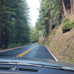 Fahrt durch Kurvenreiche Straßen mit Redwoodbäumen auf der 101 bis zum Meer.