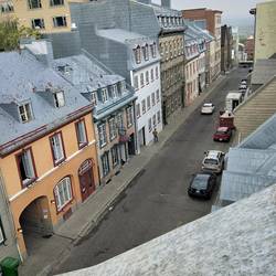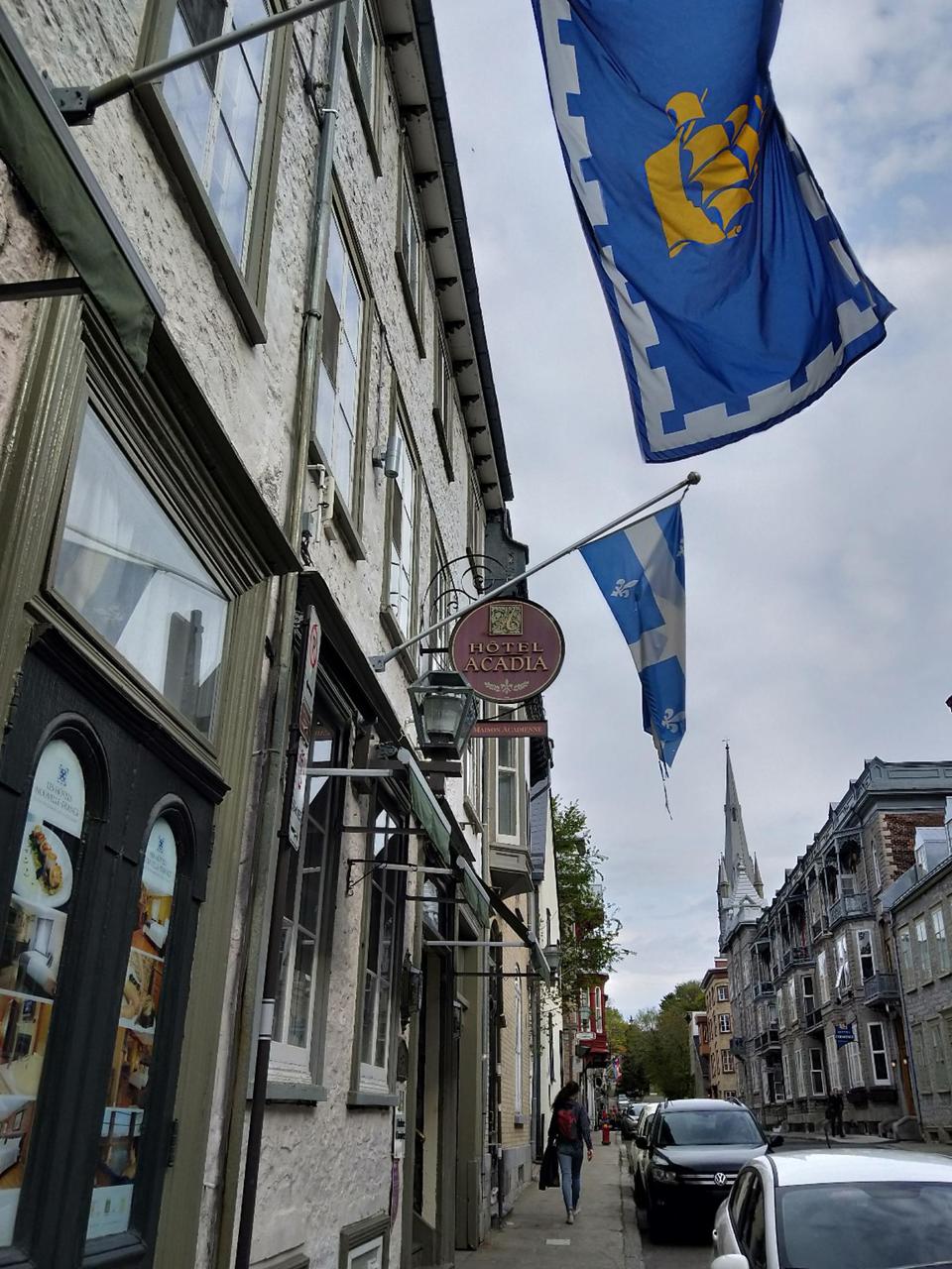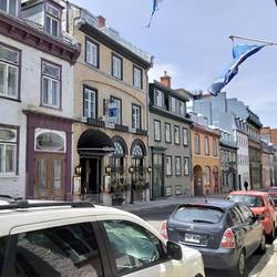 A lovely hotel in Old Quebec. Valet parking. Bath in "penthouse" room. Very narrow, steep stairs. 52 steps to ours Steve counted. 1800's. Old merchants house. Sloping, uneven floors