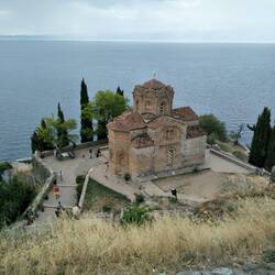 Guided walking tour of Ohrid this morning to a farmers market and then some old churches, one or 2 being thousands of years old. Beautifully preserved paintings/frescoes that we couldn't take photosLeia mais