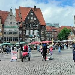 Europe cyclingResenärTo Bremen 13 juli 2024, Tyskland ⋅ ☁️ 15 °C In the van again with Anje today. Lots of support needed today. Minor collision, flat tyre.Pretty countryside. Wedding party being transported in the bucket of a tractor with the local fire brigade waiting to spray them or make a water tunnel thing (?) Apparently the bike paths in Germany are not good, wouldn't be good for my foot. Still a bit rainy also.When we got to Bremen, there was time to explore the old town square. Thankfully, only a few metres from the hotel.Tea together in a tiny restaurant.Läs merSe översättning2 gilla-markeringar Visa resan