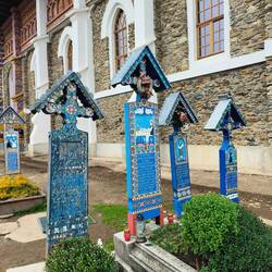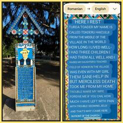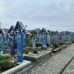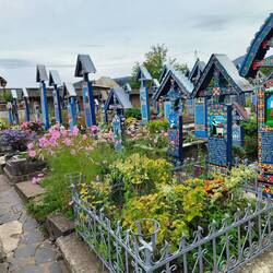 The Merry Cemetery is a cemetery in the village of Săpânța, Maramureș County, Romania. It is famous for its brightly coloured tombstones with naïve paintings describing, in a poetic andLeia mais