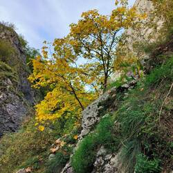 The canyon, formed through the erosion of the Jurassic limestone of the mountain, is 2 900 m long and the walls have heights reaching 300 m. The total surface of the canyon is 324 ha.
