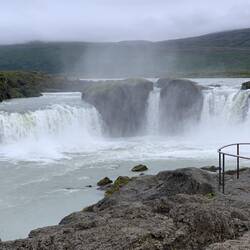 Nach der Wanderung haben wir Jakob aus der Unterkunft abgeholt und sind Richtung Myvatn los. Auf halbem Wege stolpert man quasi über den Godafoss. Nicht so hoch wie seine Verwandten, dafür megabreit und mit einem Durchfluss, der noch die Niagarafälle übersteigt. Ein grandioses Naturschauspiel. Unbedingt von beiden Seiten bestaunen.Read more
