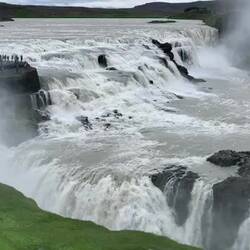 Von den Geysiren sind es nur noch 5 Minuten Fahrzeit bis zum Gullfoss Wasserfall. Der goldene Wasserfall soll seinen Namen von der sich im Wasser spiegelnden Abendröte haben. Oder aber vomRead more
