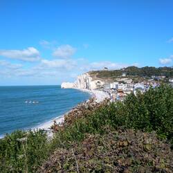 Von dort nach Etretat. Dort gibt's hübsche Klippen und Felsen zu bewundern. Lohnt sich. Aufgrund totaler Orientierungslosigkeit, Zeitnot und Ahnungslosigkeit laufen wir nicht den offiziellen Weg sondern durch ein Luxus-Ressort. Erwarte jeden Moment, das uns eine Horde Rausschmeißer rausschmeißt. Paar komische Blicke, nix passiert. Haben wohl gerade Pause. Rückweg klappt genauso.