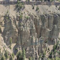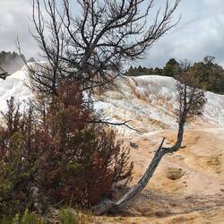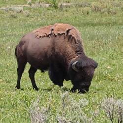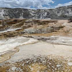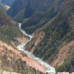 Schlammlöcher, Schwefelpools, Bisons, super idyllisch am Yellowstone River entlang bis zu den Wasserfällen im Grand Canyon of the Yellowstone.