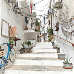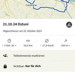 Wir radeln direkt von Hotel in Specciola los nach Ostuni. Uralte Olivenbäume und überall diese niedrigen Trockenmauern. Sieht sehr schön aus.