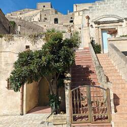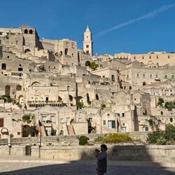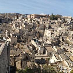 Wir wechseln wieder dann Standort und der Bus bringt uns an den Ortsrand von Matera. Ab hier geht's mit dem Fahrrad in die Stadt. Dann radeln wir noch gemeinsam zu