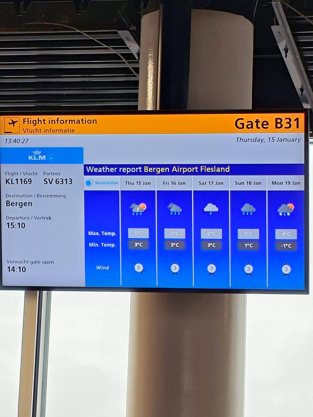 Um halb fünf aufstehen. Flughafen Frankfurt und über Amsterdam nach Bergen. Um halb sieben im Hotel. Ein ganz schön langer Tag nur um ein bisschen in Europa rum zu gondeln.