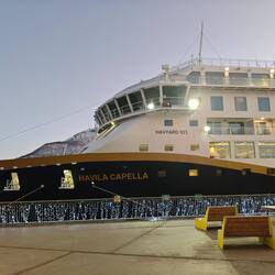 Wie fahren an Monk Island vorbei und begegnen der Havila Polaris. Jeden Tag begegnet unsLeggi altro