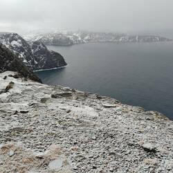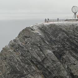 Ausflug von Honningsvåg ans Nordkap. Man fährt eine 3/4 Stunde mit dem Bus über einen 312 m hohen Pass ans Nordende der Insel Magerøya.