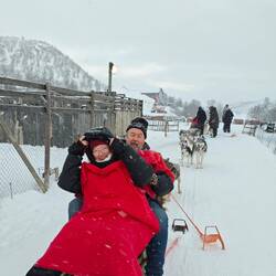 Kurze Fahrt mit dem Bus und dort wird uns viel über die Rentiere erzählt. Wir dürfen sie auch füttern.