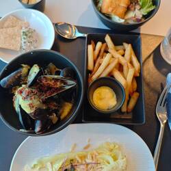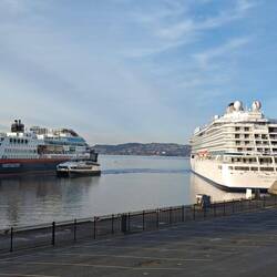 Frühstück in Trondheim. Wie bleiben an Bord.