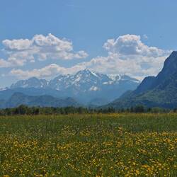 Erst mal immer der Salzach entlang. Prima Radwege. Herrliches Bergpanorama.