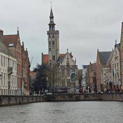 Wir schwingen uns tatsächlich aufs Fahrrad und radeln am Kanal entlang nach Brügge.