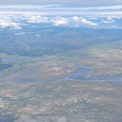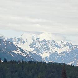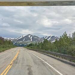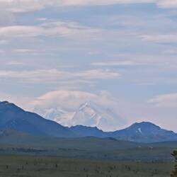 An der Straße am Park entlang sieht man den MtMckinley schöner und dichter als auf der Parkstraße gestern.